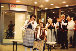 二人もスーパーの前で唄ってみました