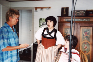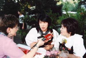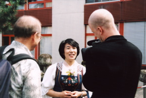 2005年6月アコーディオンの新倉恵と付き添いの石川知香子と共に
